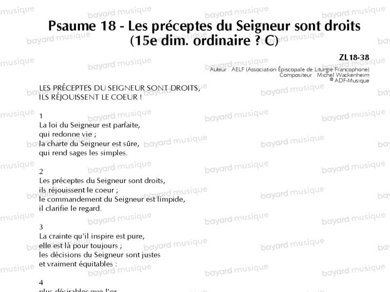Psaume 18 - Les préceptes du Seigneur sont droits (15e dim. ordinaire – C)