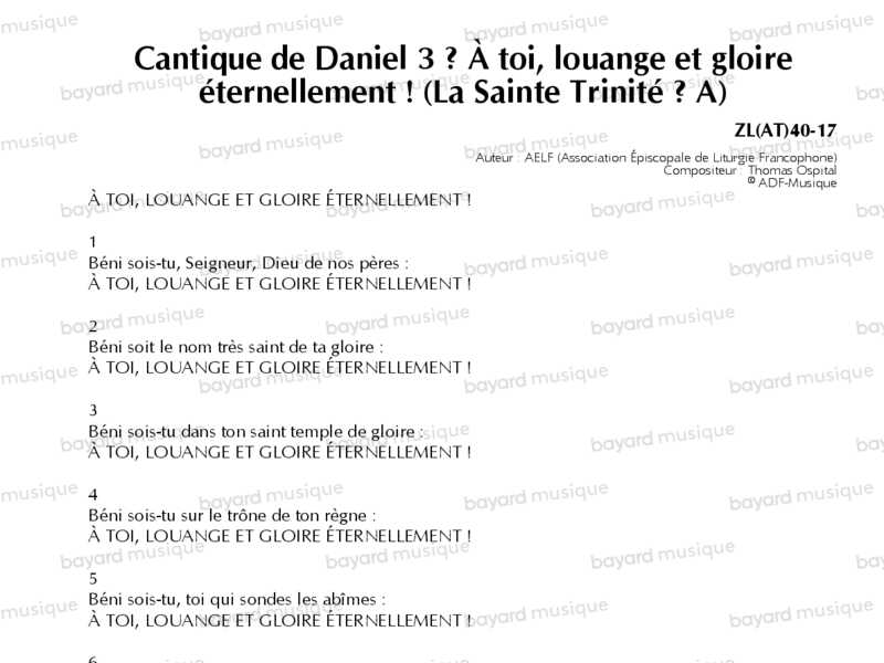 17. Cantique de Daniel 3 – À toi, louange et gloire éternellement ! (La Sainte Trinité – A)