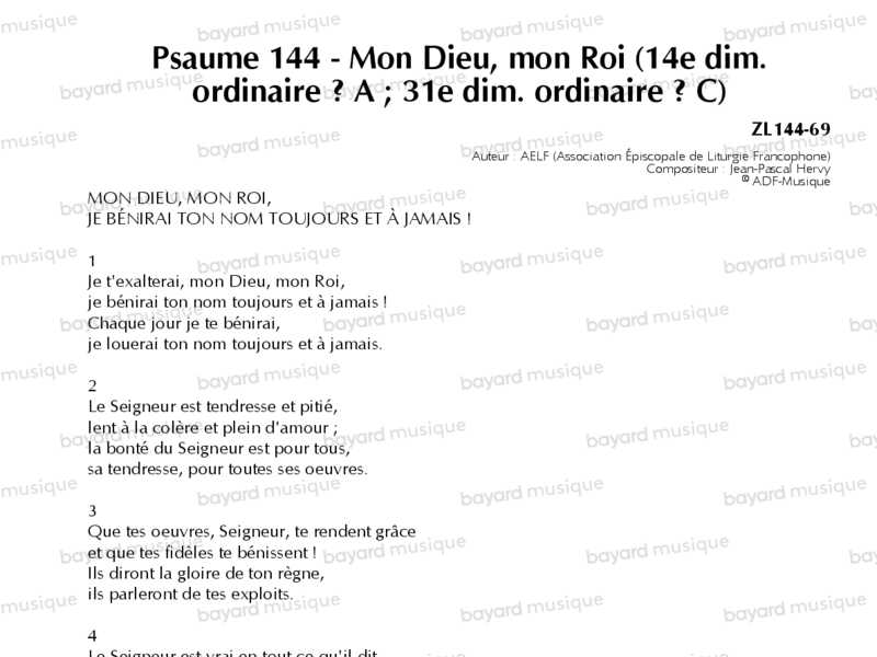Psaume 144 - Mon Dieu, mon Roi (14e dim. ordinaire – A ; 31e dim. ordinaire – C)