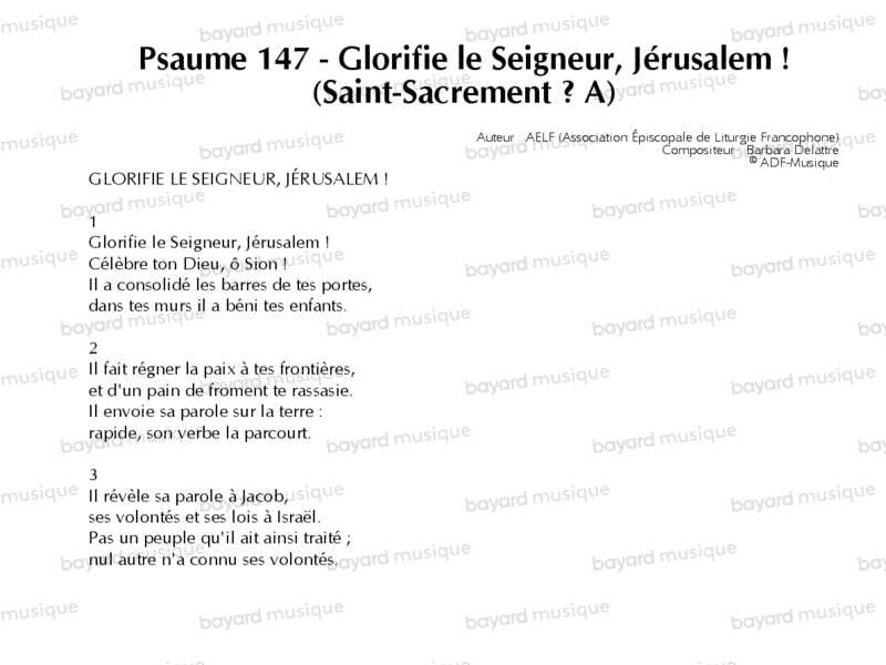 18. Psaume 147 - Glorifie le Seigneur, Jérusalem ! (Saint-Sacrement – A)