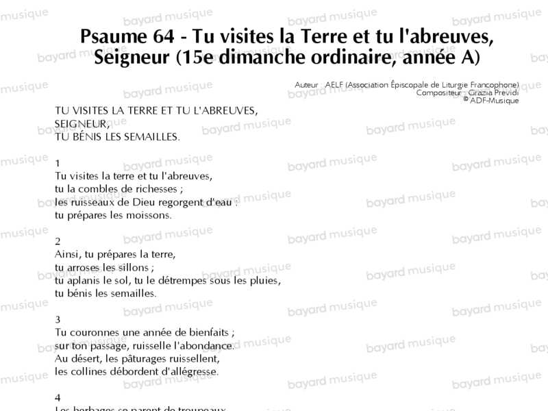 Psaume 64 - Tu visites la Terre et tu l'abreuves, Seigneur (15e dimanche ordinaire, année A)