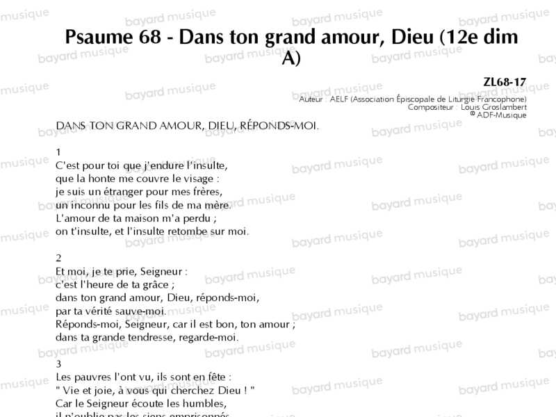 20. Psaume 68 - Dans ton grand amour, Dieu (12e dim A)