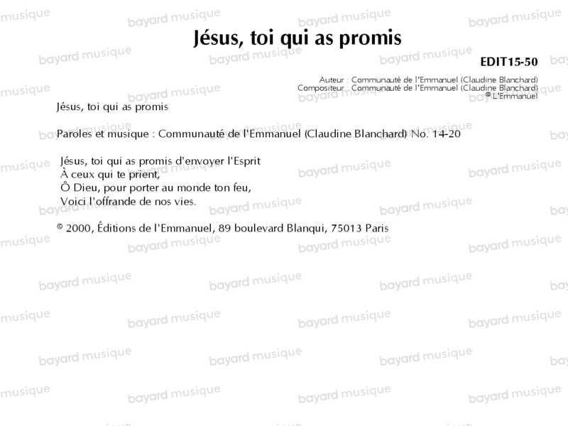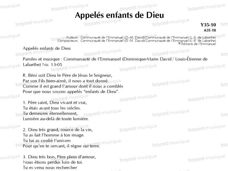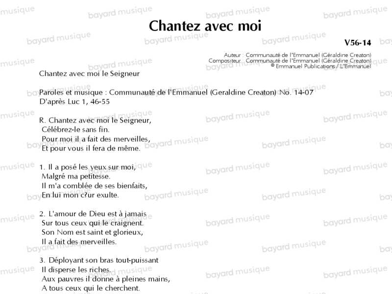 Interprété par la Communauté du Chemin Neuf (version instrumentale).