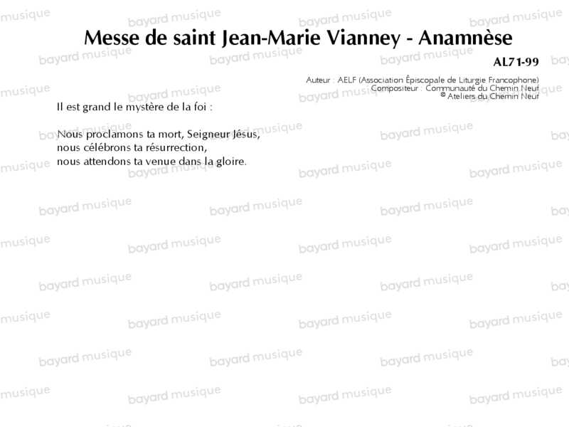 08. Anamnèse - Messe de Saint Jean-Marie Vianney