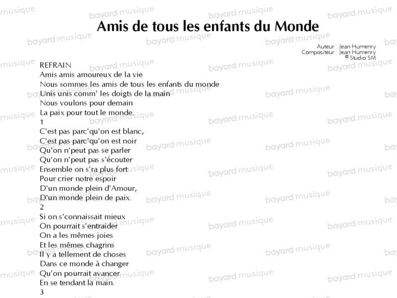 Interprété par Les Amis de Tous les Enfants du Monde.