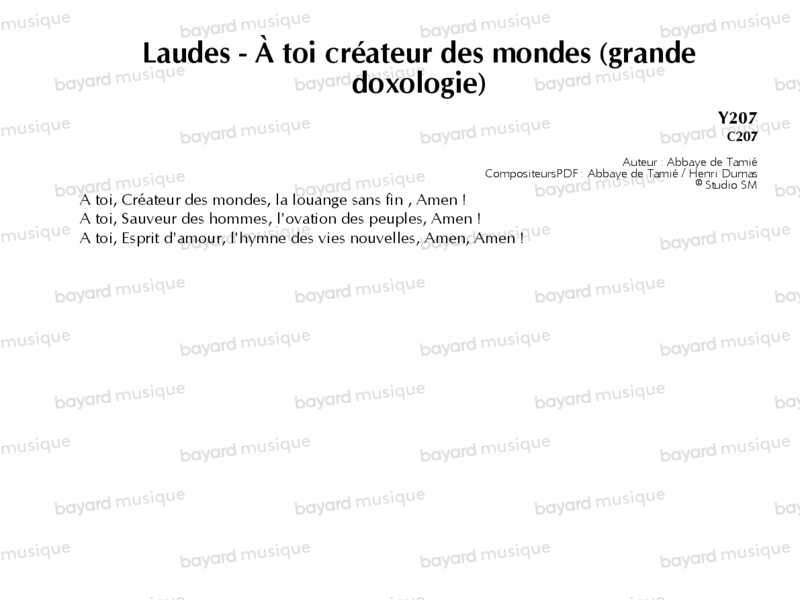 13. Laudes-Grande doxologie-A Toi, Créateur des Mondes
