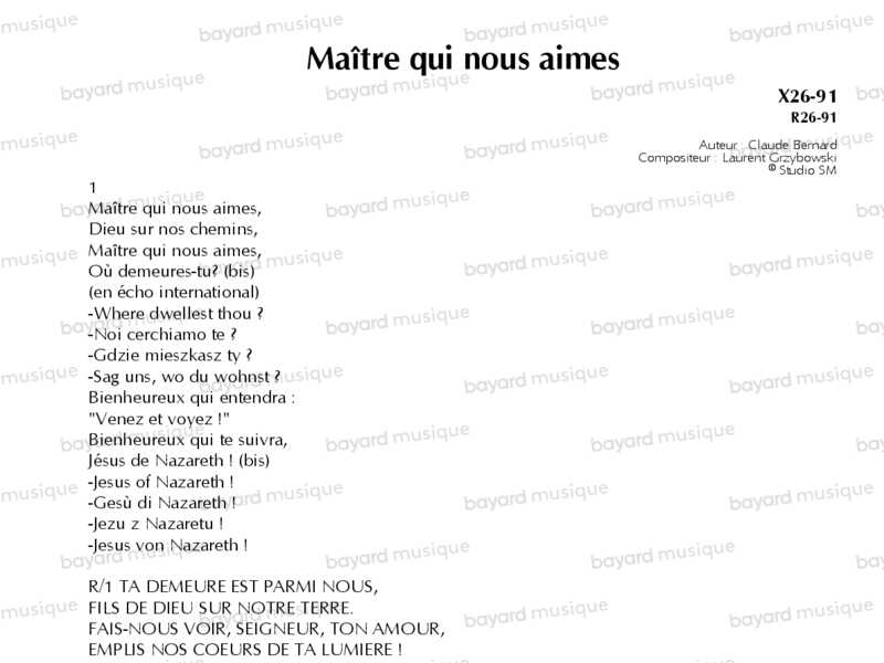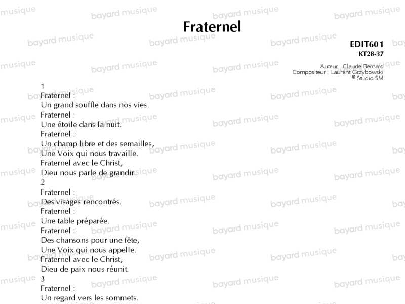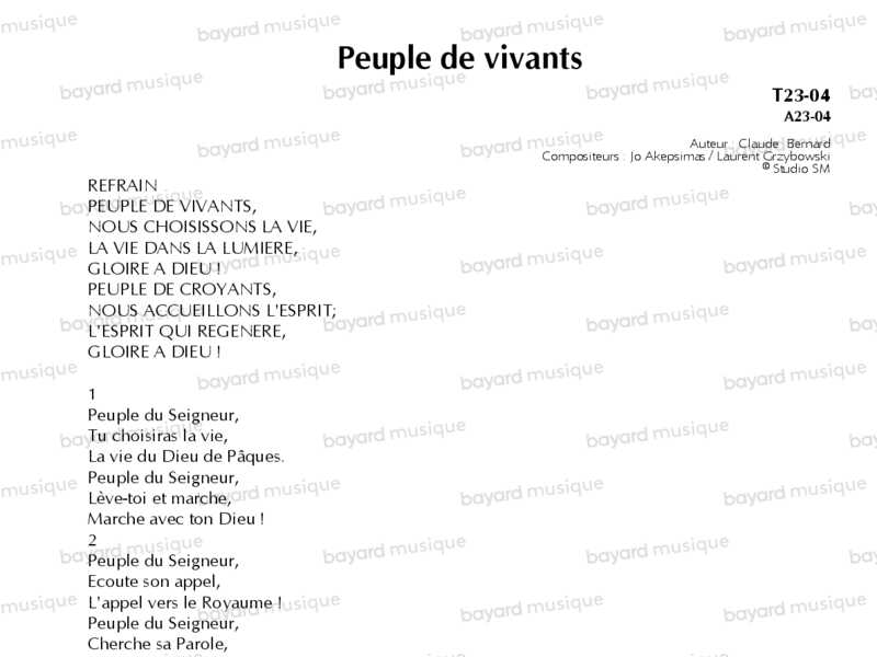 14 chants de Laurent Grzybowski destinés à des célébrations liturgiques ou à des grands rassemblements et en particulier au Frat.