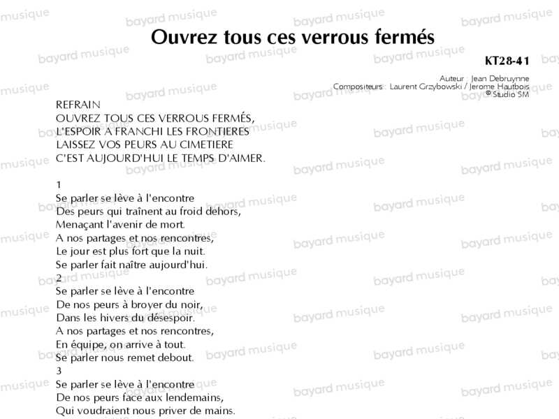 Interprété par Laurent Grzybowski, Mannick, Jo Akepsimas, Gaëtan de Courrèges et Les Compagnons de l'Arche.
