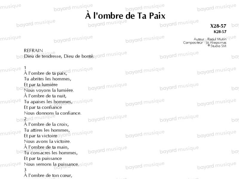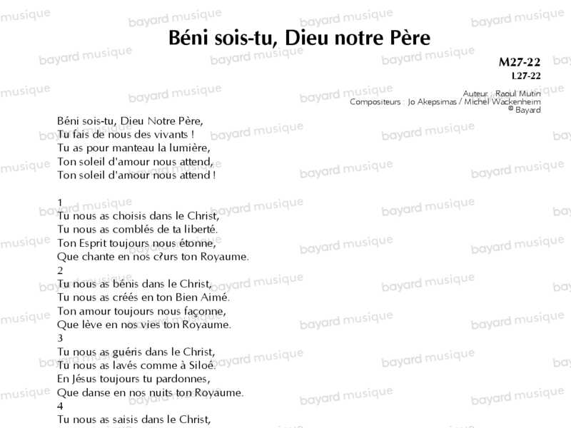 Interprété par Raoul Mutin et l'ensemble vocal Dédicace.