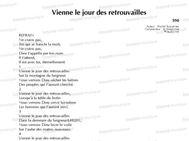 Interprété par la Chorale Élisabeth Brasseur de Versailles, le Chœur des Pères du Saint Esprit de Chevilly et Maurice Fréchard.