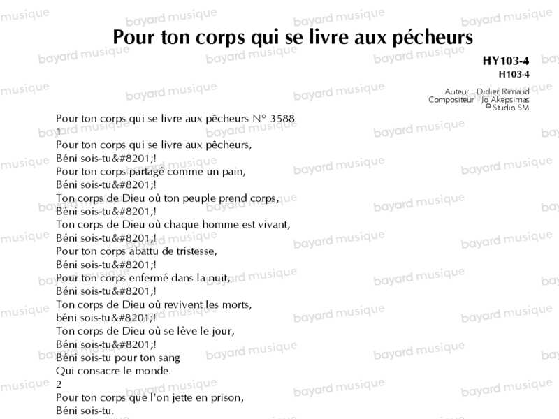Interprété par le chœur des Pères du Saint Esprit de Chevilly.