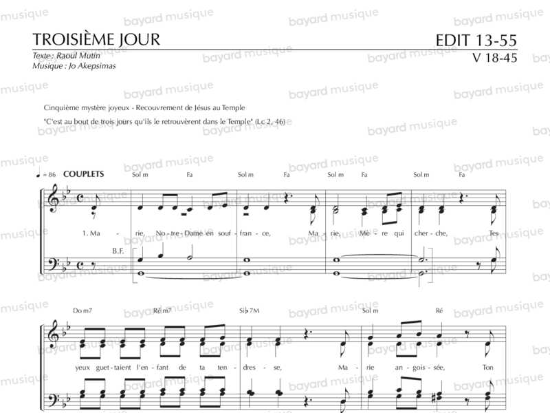15 chants correspondant aux 15 mystères du Rosaire écrits par Raoul Mutin en collaboration avec Les Équipes du Rosaire.