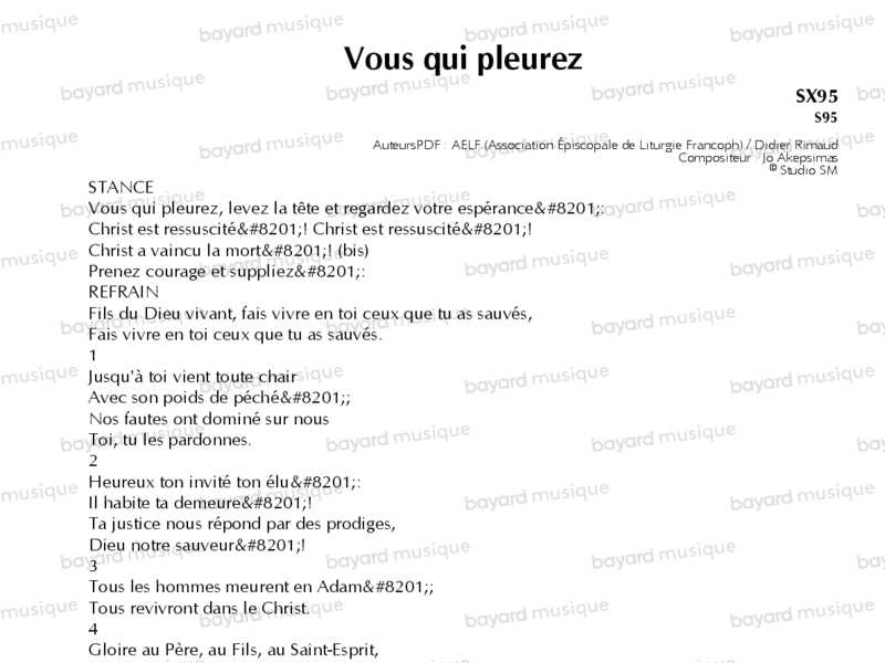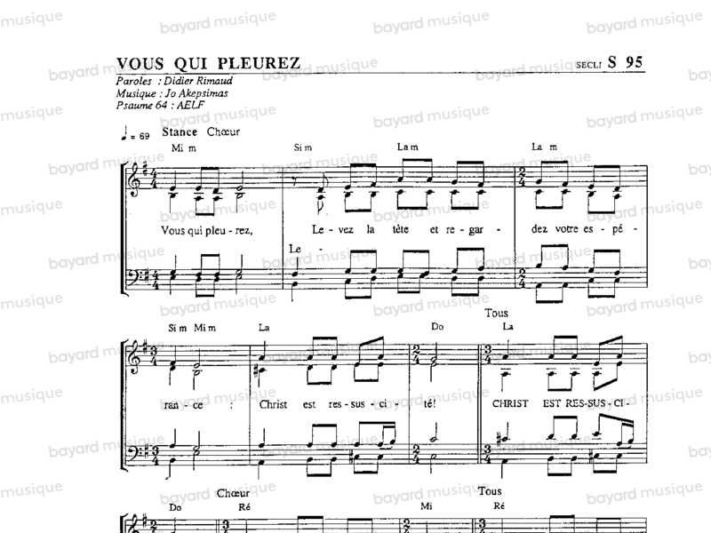 Scan de la partition originale, comprend : Kyrie / Prière psalmique / Prière universelle / Sanctus / Agnus.
