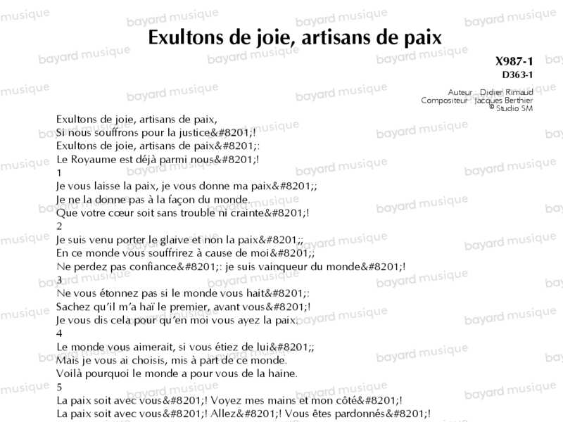 Retrouvez dans ce CD les messes « Que tes œuvres sont belles » et «Vienne la paix» écrites par Didier Rimaud et composées par Jacques Berthier. 20 titres.