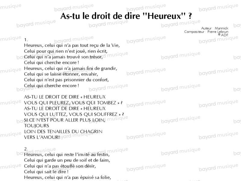 13 chansons composées et interprétées par Pierre Lebrun sur des textes de Mannick pour revisiter les béatitudes de l'Évangile sur des rythmes de Jazz.