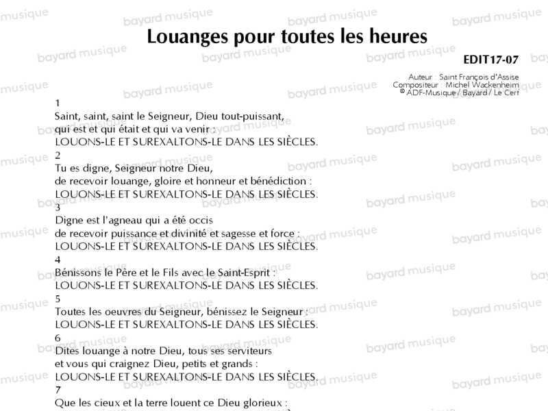 Michel Wackenheim a mis en musique les grands textes de Saint François d’Assise. 12 chants de louange interprétés par le Jeune Chœur Liturgique.