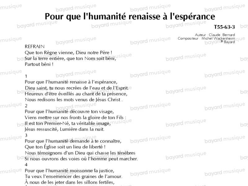 Interprété par Vanessa Berrué, Léo Vym et l'ensemble vocal l'Alliance.