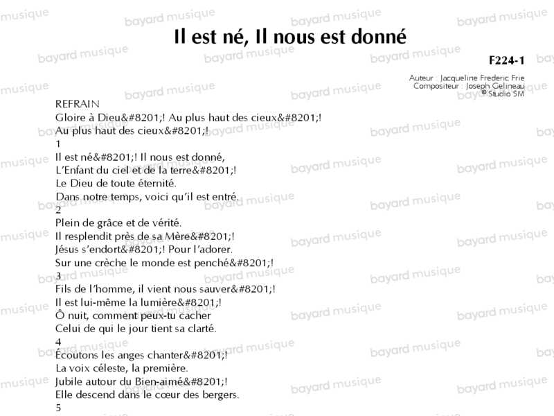 Interprété par Les Petits Chanteurs de Saint-Laurent.