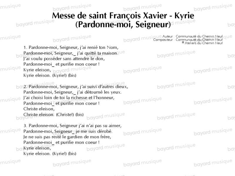19 chants liturgiques de Patricia Lebrun dont la Messe de Saint François Xavier pour accompagner les célébrations au fil de l'année liturgique.