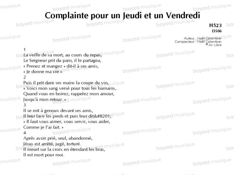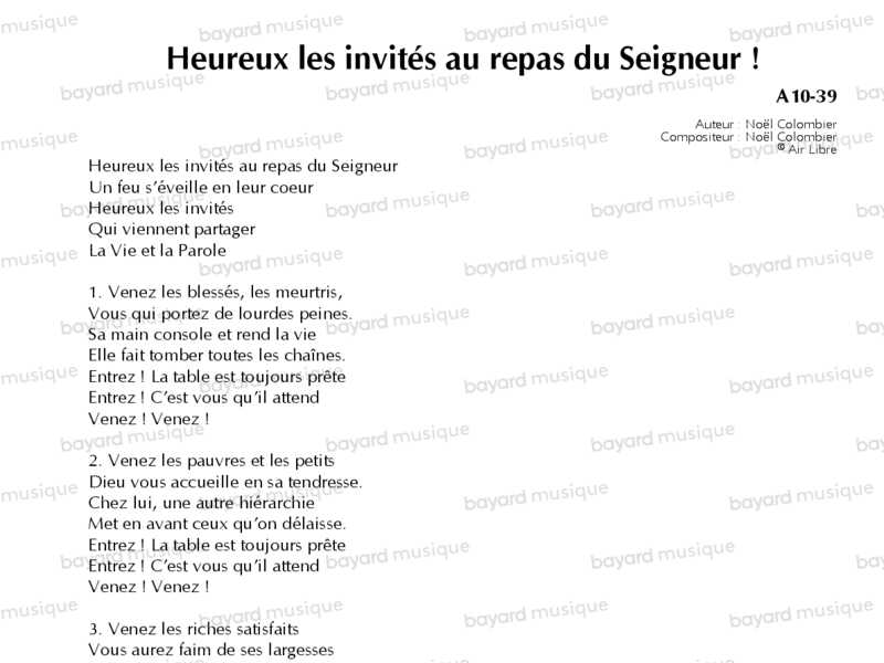 Interprété par Noël Colombier. ATTENTION ! Ce chant très court, ne comporte qu'un seul refrain.