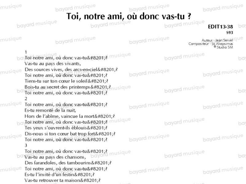 Interprété par John Littleton, les étudiants Jésuites de Chantilly et l'Orchestre Jeff Gilson.