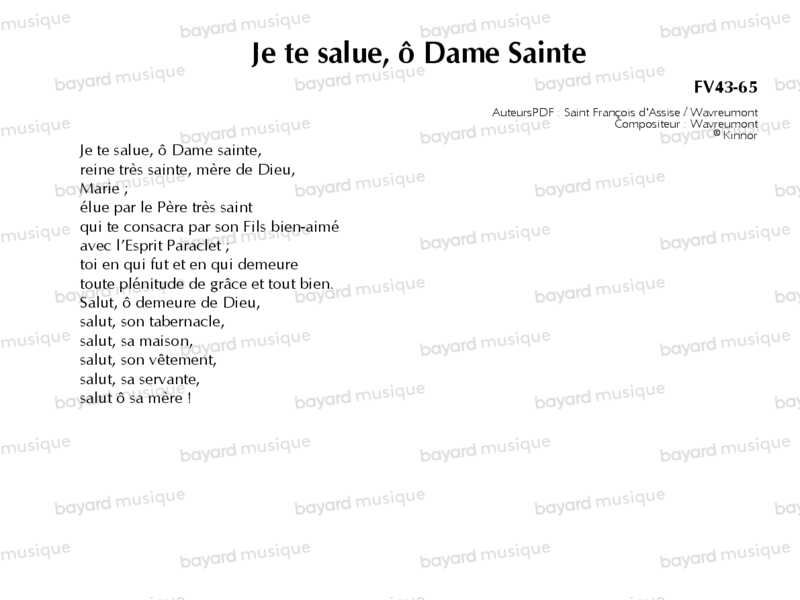 Je te salue, ô Dame Sainte - FV43-65