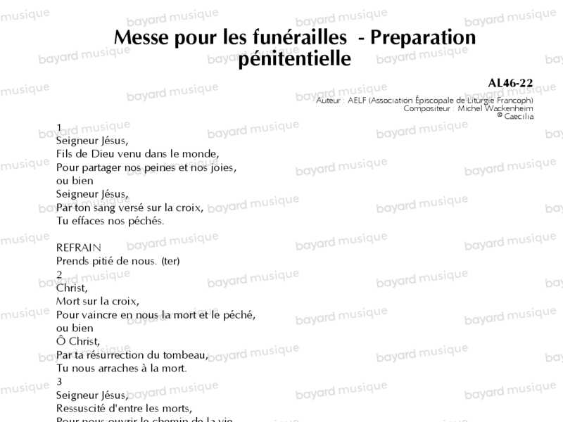 Messe pour les funérailles - Preparation pénitentielle - AL46-22