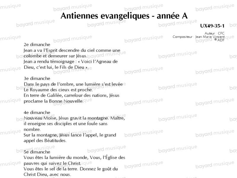 Antiennes evangeliques - année A - UX49-35-1