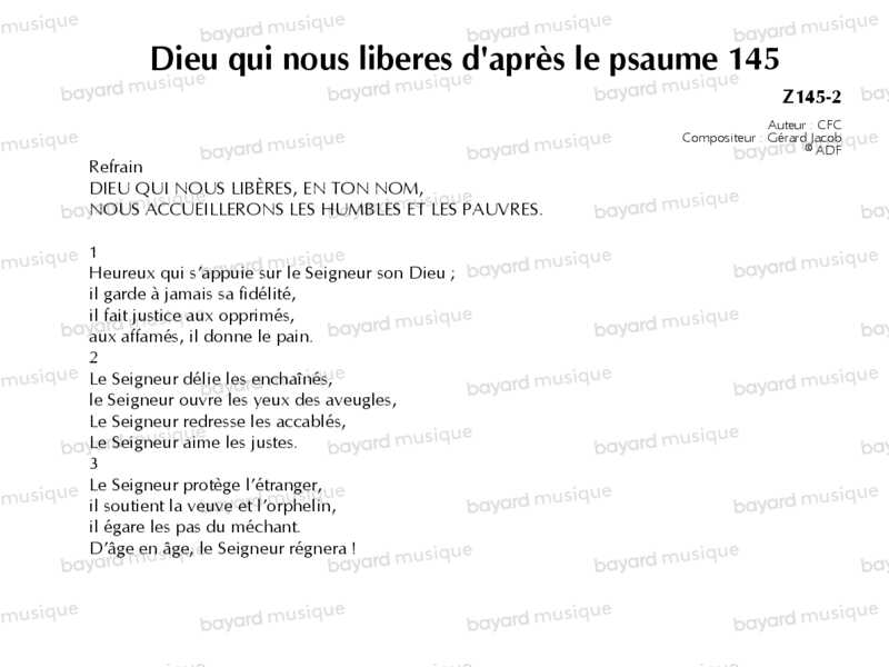 Dieu qui nous liberes d'après le Psaume 145 - Z145-2