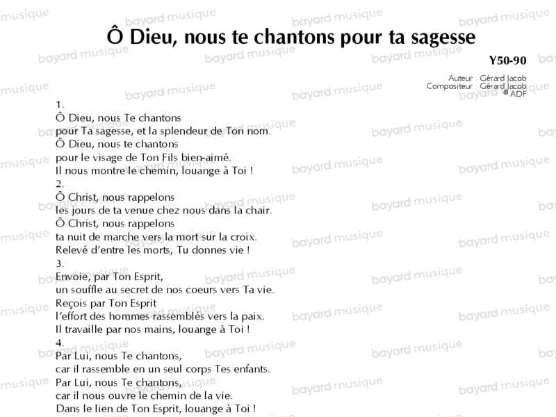 Ô Dieu, nous te chantons pour ta sagesse - Y50-90