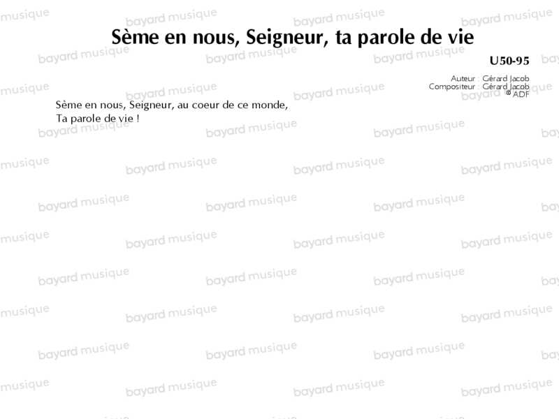 Sème en nous, Seigneur, ta parole de vie - U50-95