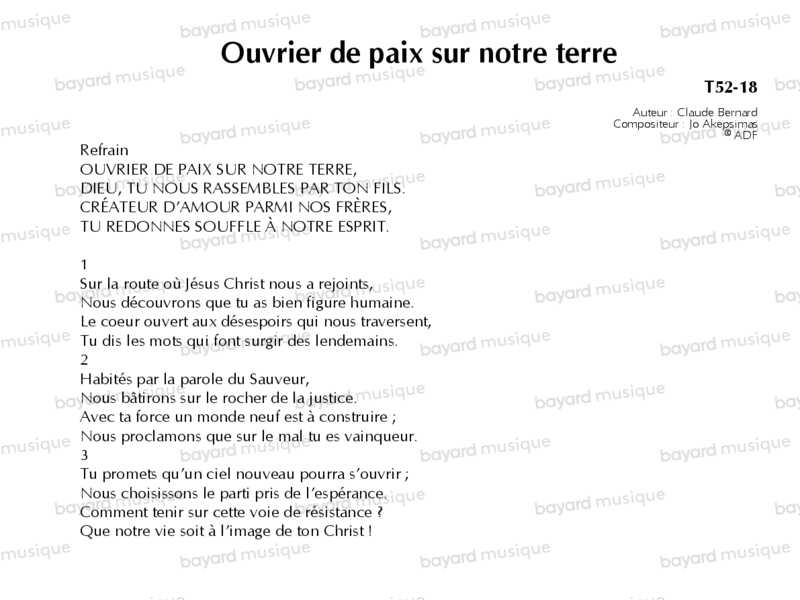 Ce chant est écrit d'après le thème d'un forum œcuménique de la mission: "Europe, élargis ton regard avec le Christ, ouvrons nos yeux". Il intègre aussi le thème de la semaine missionnaire 2003: "l'Évangile, bonheur pour le monde"; un bonheur vécu dans le service des autres, conformément à Marc 10. Convient pour la Journée missionnaire mondiale l'avant dernier dimanche en octobre. Il peut être utiliser également dans le cadre d'une réflexion sur 'avenir de la terre, la mondialisation, le partage, la solidarité, le CCFD, le Secours catholique... les célébrations d'envoi en mission.