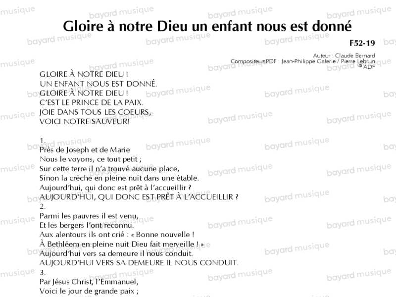 Gloire à notre Dieu un enfant nous est donné - F52-19