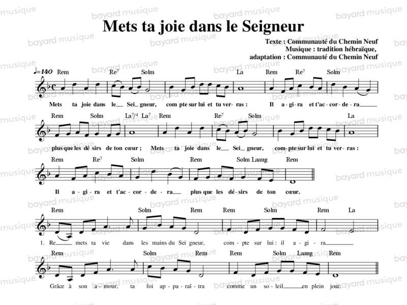Chant de louange, méditation de la Parole. Ce chant dynamique pourra trouver place lors d'une veillée de prière ou d'une célébration d'adoration.