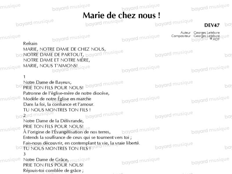 Chant de pèlerinage dans les divers sanctuaires du diocèse de Bayeux et Lisieux dédiés à Marie.