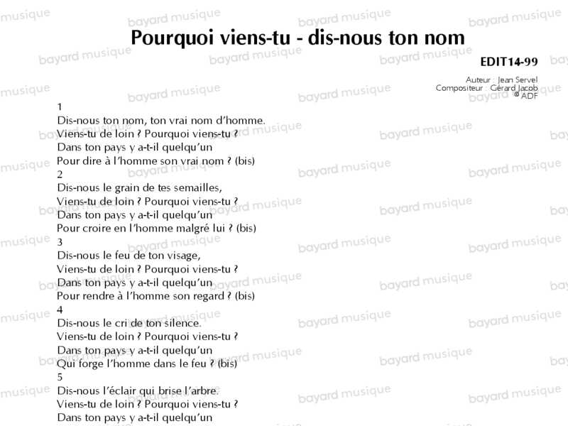 Pourquoi viens-tu - dis-nous ton nom - EDIT14-99