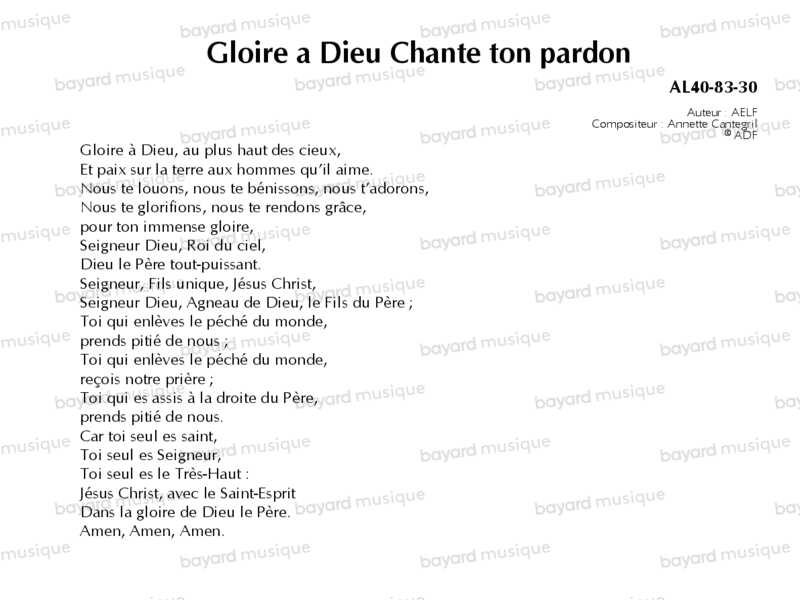Gloire a Dieu Chante ton pardon - AL40-83-30