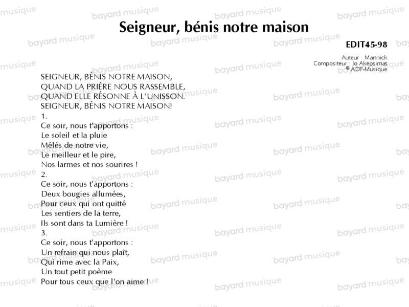mieux partager mes jeux (chambre), etc. puis reprenez le refrain " Seigneur, bénis notre maison ! "