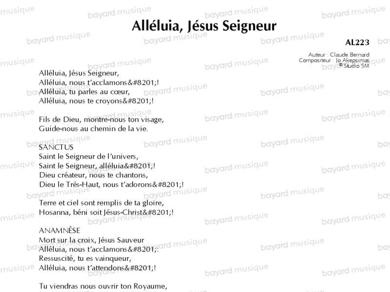 Alléluia, Jésus Seigneur - AL223