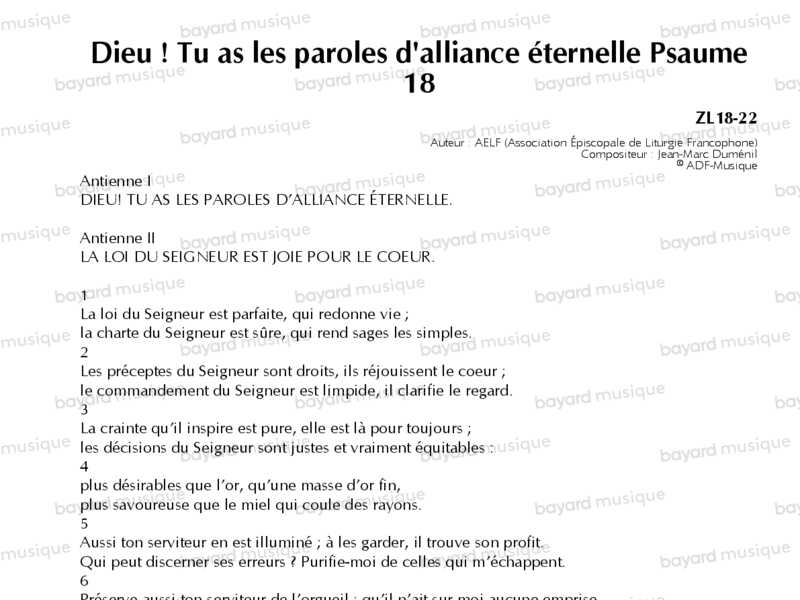Psaume 18 - Dieu ! Tu as les paroles d'alliance éternelle - ZL18-22