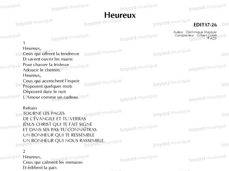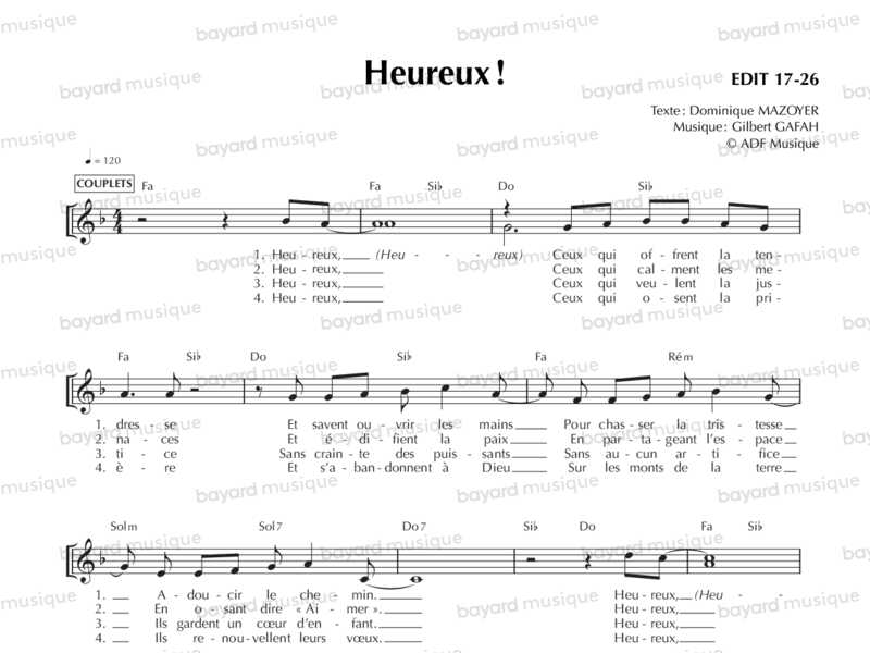 Ce chant est une approche personnelle de ce texte très contemporain : offrir la tendresse, édifier la paix, chercher la vérité, chanter Dieu… Tant de chemins pour être heureux !