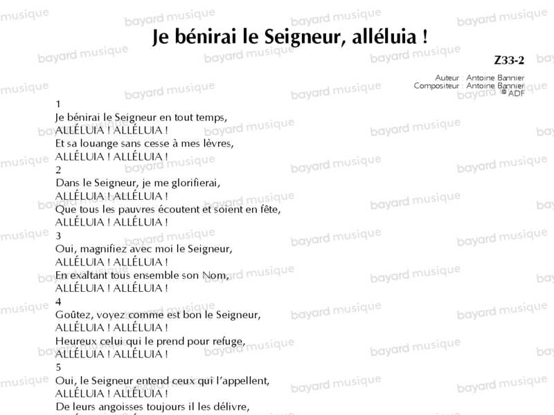Je bénirai le Seigneur, alléluia ! - Z33-2