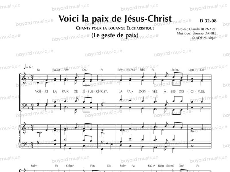 C'est un silple refrain de quatre lignes, qu'on peut répéter autant qu'il est nécessaire. Ce chant spécifique pour accompagner le geste de la paix se veut différent du chant de la fraction du pain, l'Agneau de Dieu, destiné à accompagner le rite du pain partagé.