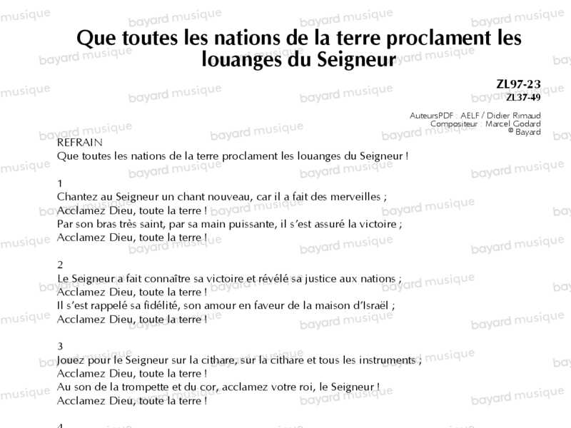 Que toutes les nations de la terre proclament les louanges du Seigneur - ZL97-23