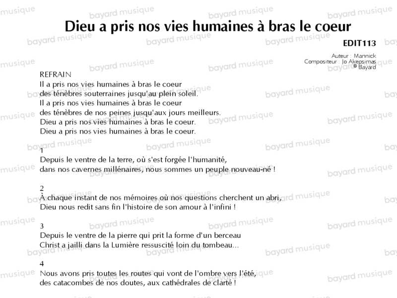 Dieu a pris nos vies humaines à bras le coeur - EDIT113