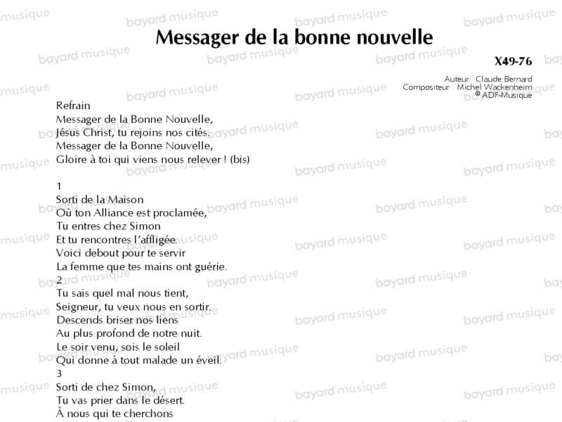 Un \"chant d\'évangile\" composé pour le 5e dimanche B, mais utilisable avec bien des récits évangéliques où l\'on voit Jésus guérir. Ce chant peux éventuellement être utilisé pour un envoi en mission.