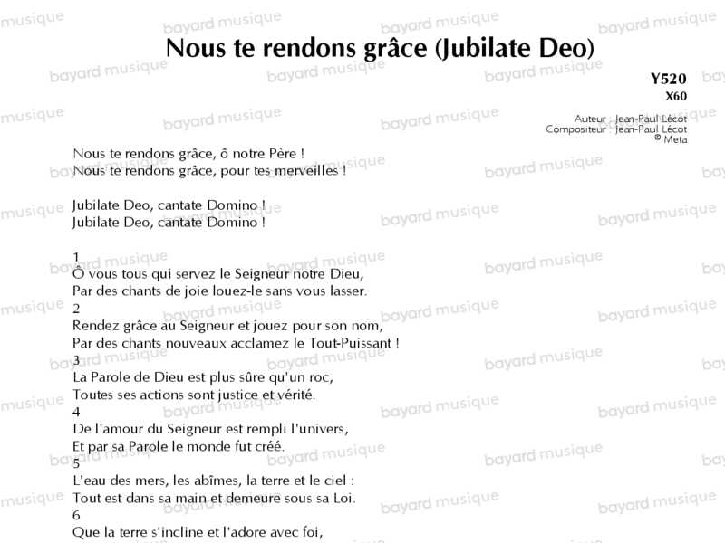 Nous te rendons grâce (Jubilate Deo) - Y520