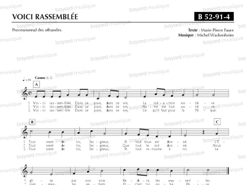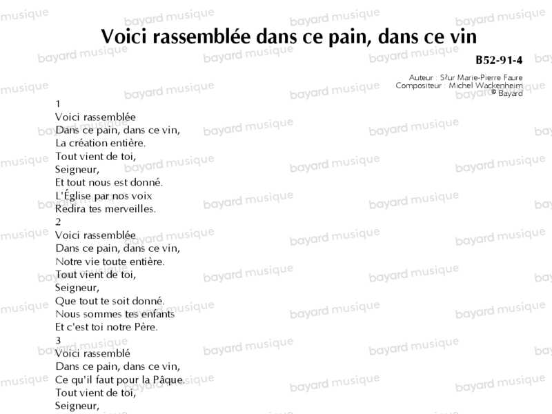 Voici rassemblée dans ce pain, dans ce vin - B52-91-4