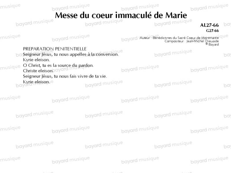 Messe du coeur immaculé de Marie - Péparation Pénitentielle - AL27-66