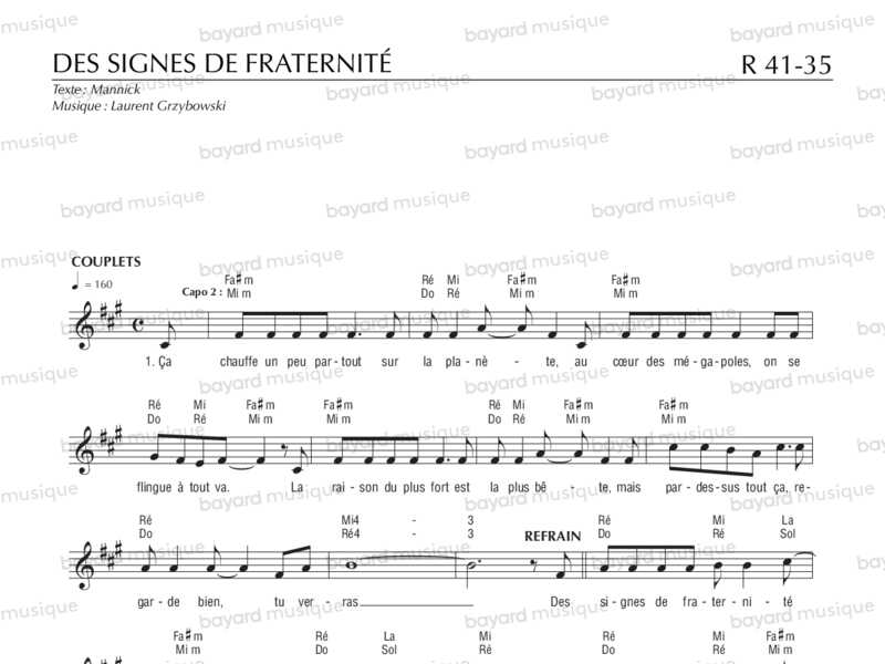 pas l\'espérance, bien au contraire, car les signes de fraternité apparaissent par contraste. \" Un arbre qui s\'abat fait beaucoup de bruit, disait Gandhi, mais toute une forêt qui germe, on ne l\'entend pas \". Regarde bien, tu verras… Plus qu\'un état des lieux, ce chant est un appel à s\'engager. Il dit l\'urgence de la fraternité.